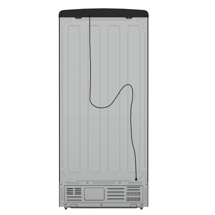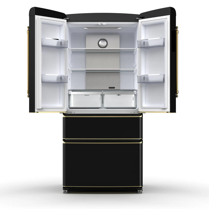 Make a bold statement in your kitchen with our 18 cu.ft. frost-free refrigerator in a sleek black finish, accented with antique brass handles for a sophisticated touch. Offering a spacious 12 cu.ft. fresh food compartment and a 6 cu.ft. freezer, this model provides flexible storage solutions with adjustable glass shelves, door bins, and crispers. Advanced Super Cool and Super Freeze functions keep your groceries fresh, while energy-efficient LED lighting brightens every corner. The no-frost design ensures easy maintenance, and the retro-inspired look with a stainless steel back panel adds timeless elegance to any home. ENERGY STAR certified, this refrigerator combines style and sustainability. Lower the cost of living with Forno.
