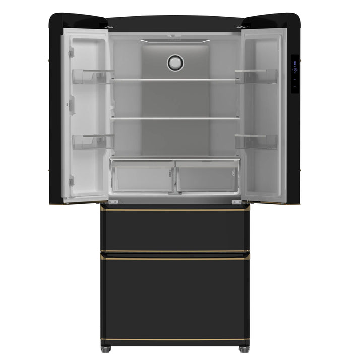 Forno Luigi 33-Inch 18 cu.ft. French Door Refrigerator in Black with Antique Brass Handles (FFFFD1791-33BLK)