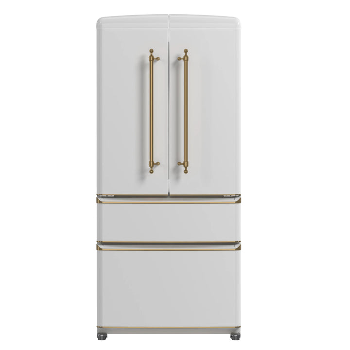 Forno Luigi 33-Inch 18 cu.ft. French Door Refrigerator in White with Antique Brass Handles (FFFFD1791-33WHT)