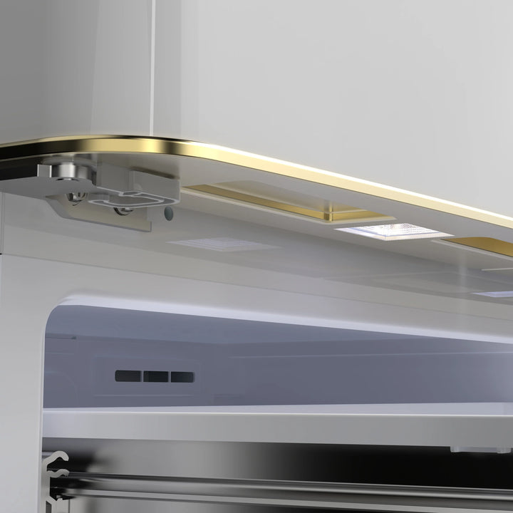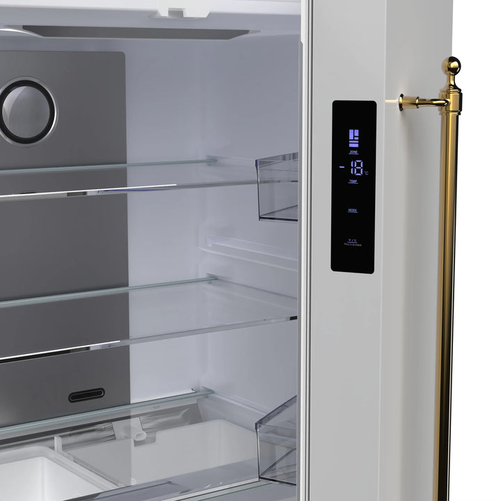 Upgrade your kitchen with our 18 cu.ft. frost-free refrigerator featuring a stylish white finish complemented by antique brass handles. Enjoy ample storage with 12 cu.ft. of fresh food space and a 6 cu.ft. freezer, equipped with adjustable glass shelves, spacious door bins, and crispers for organized storage. The Super Cool and Super Freeze functions help lock in freshness, while bright LED lighting ensures easy visibility. With no-frost technology, hassle-free maintenance is a given. A sleek retro-inspired design, combined with a durable stainless steel back panel and silver-trimmed details, makes this ENERGY STAR-certified refrigerator a perfect blend of style, functionality, and energy efficiency. Lower the cost of living with Forno.